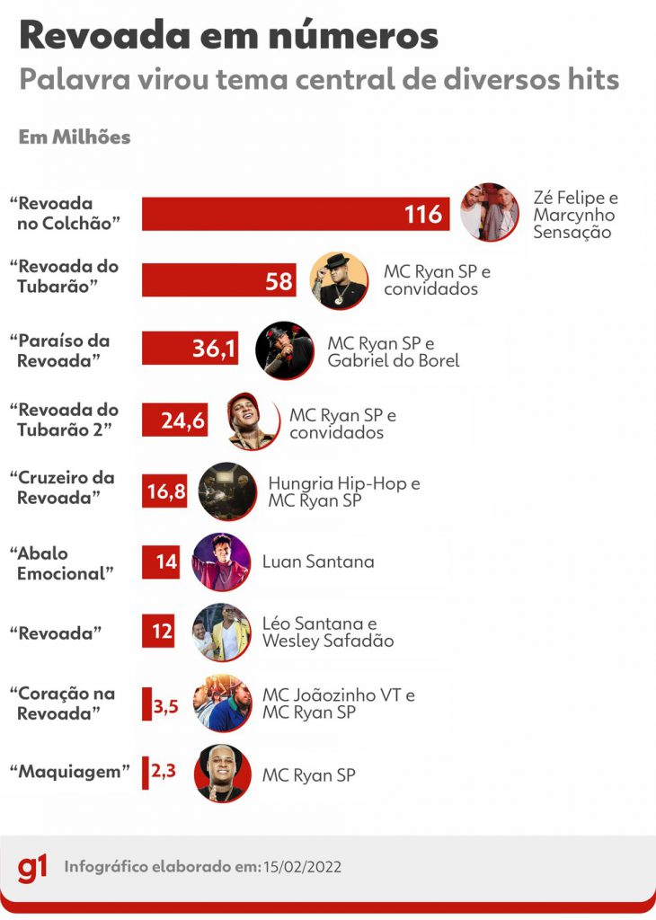 No dia 4 de fevereiro em uma rápida passada pelos lançamentos da semana, a revoada estava presente em “Maquiagem”, do Ryan, e “Abalo Emocional”, nova do Luan Santana, que ampliou o uso da palavra para o sertanejo.